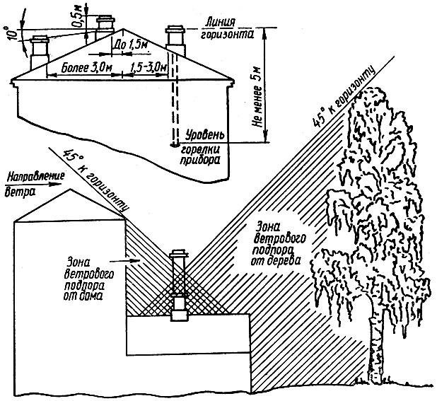 Да, скрытая прокладка допускается, главное – вывести вентиляционный канал из зоны ветрового подпора, как на изображении ниже.